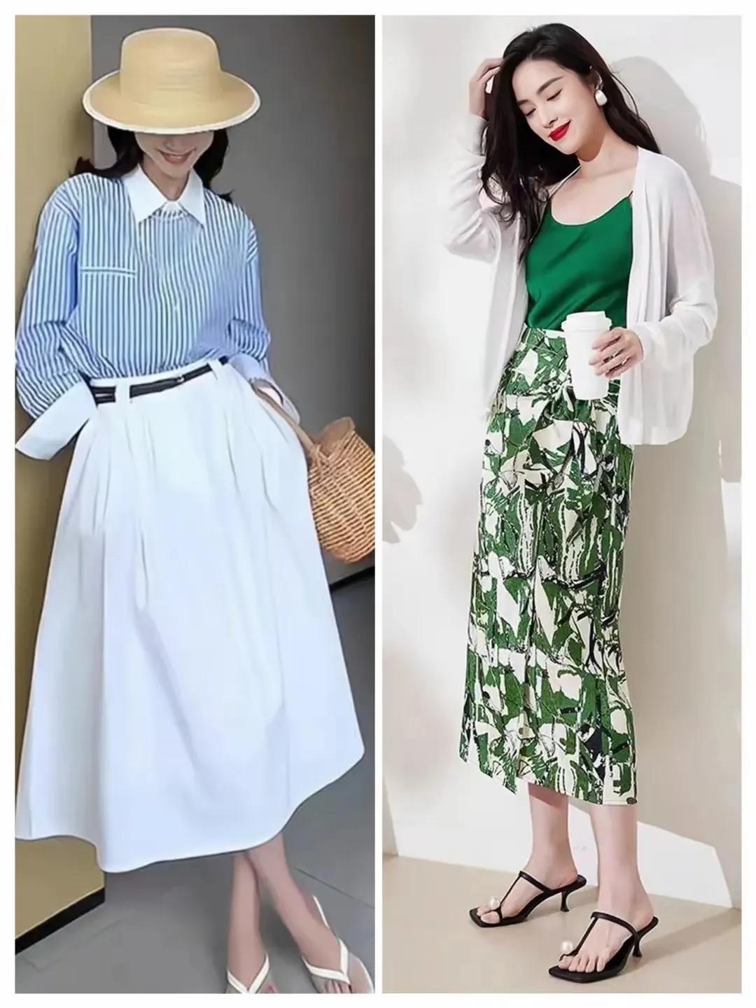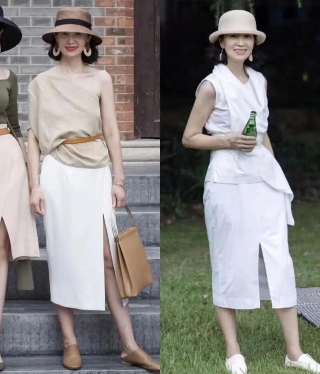 不外无论遴荐哪一种穿搭口头,皆要念念方设法的去擢升你的腰线,比如说你用衬衫上衣搭配上半身裙,你可以把衬衫塞进裙子内部来擢升腰线。能够像底下这位中年女性一样,用一款小小的腰带来点缀,不光可以擢升腰线,又能勒住小蛮腰,可以说是一举两得。
