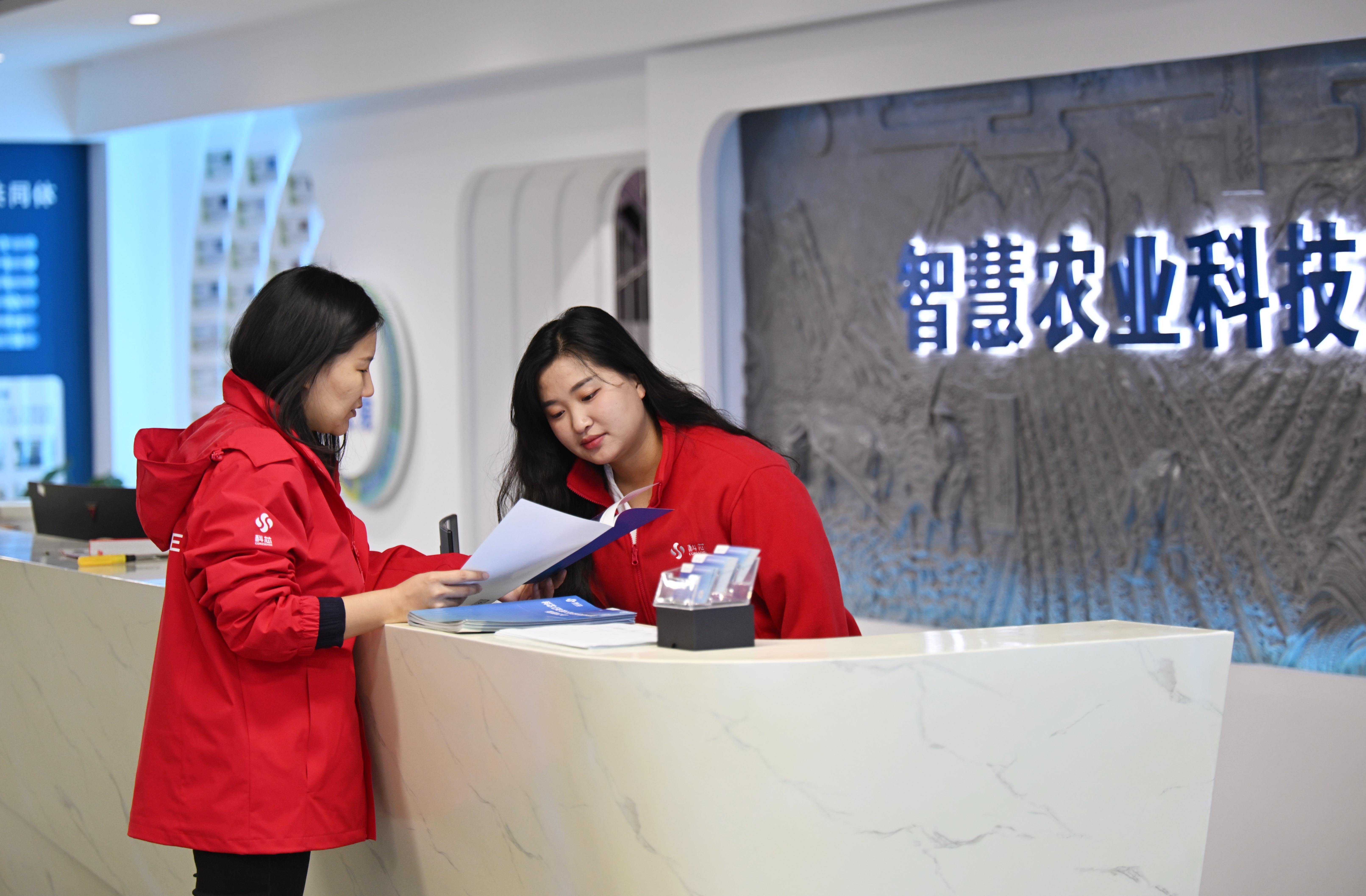 在位于天津滨海—中关村科技园的科芯(天津)生态农业科技有限公司,服务主谈主员在相互相通(2月20日摄)。新华社记者李然摄