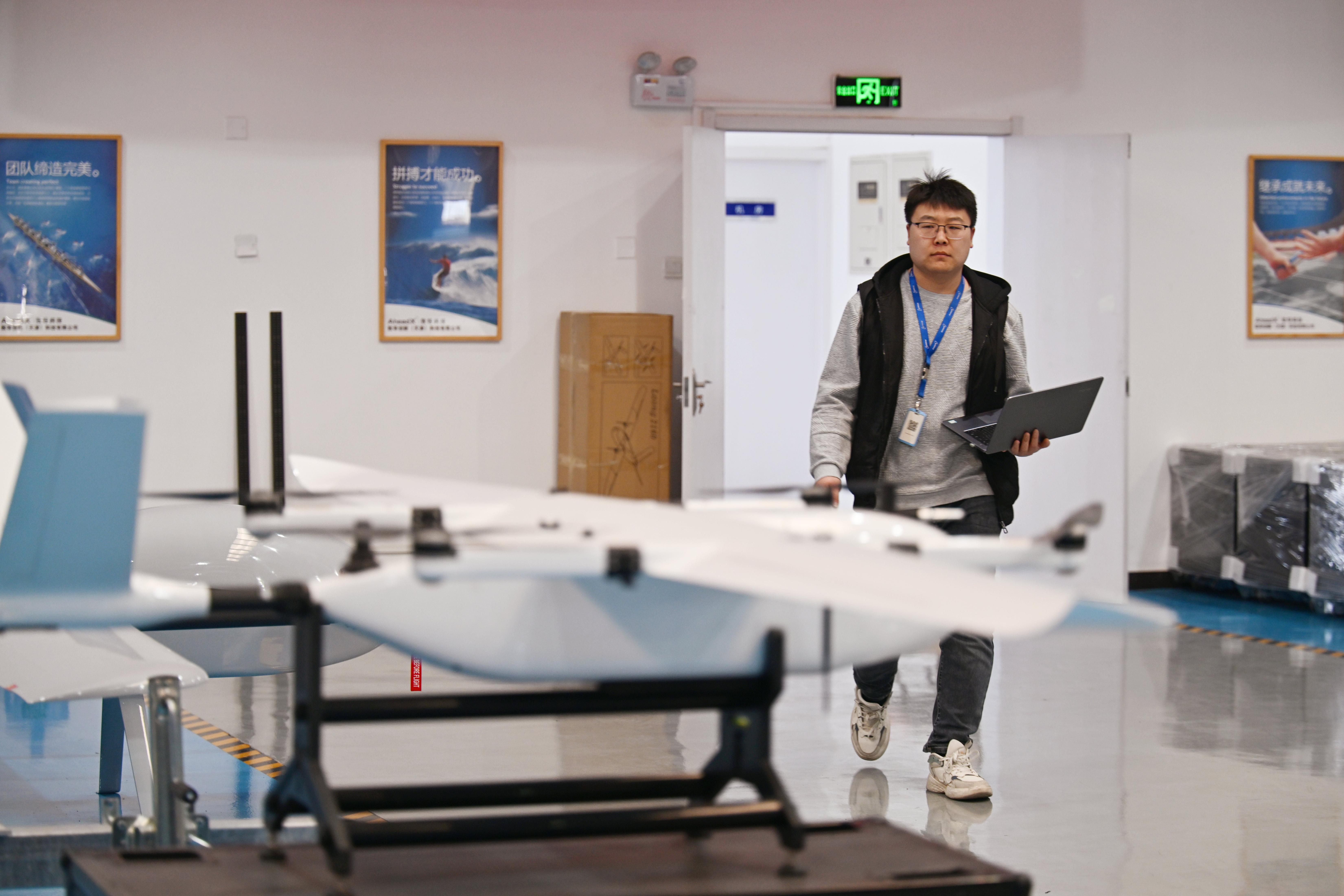 在天津滨海—中关村科技园训诫的致导翻新(天津)科技有限公司,服务主谈主员准备对无东谈主机进行调试(2月20日摄)。新华社记者李然摄