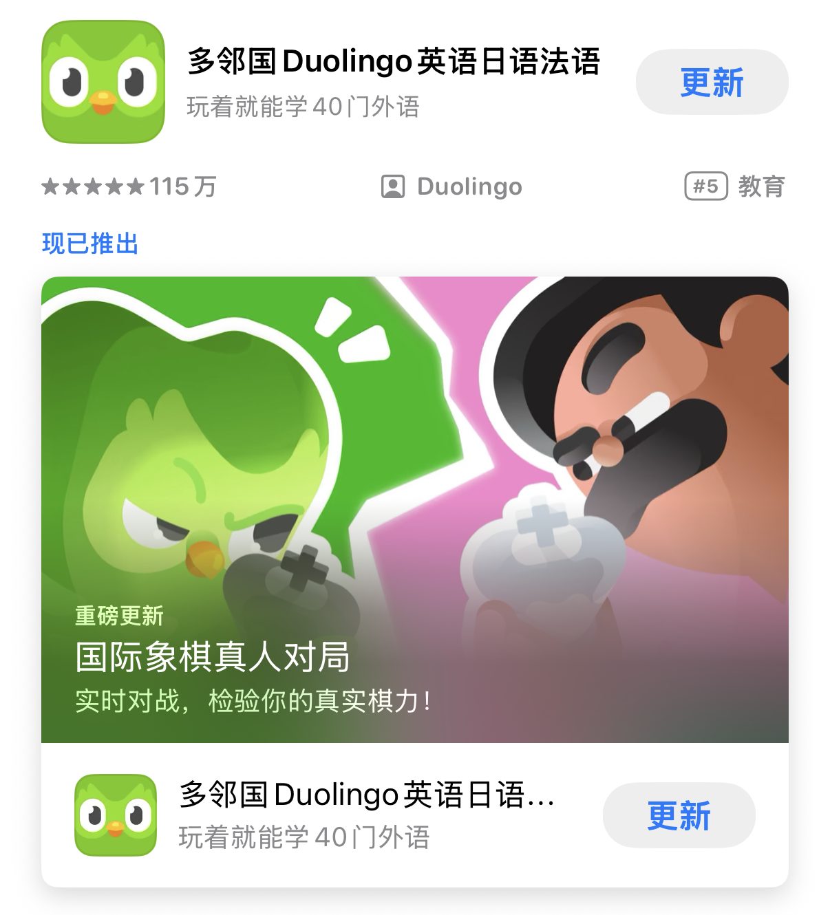 多邻国在iPhone的App Store中